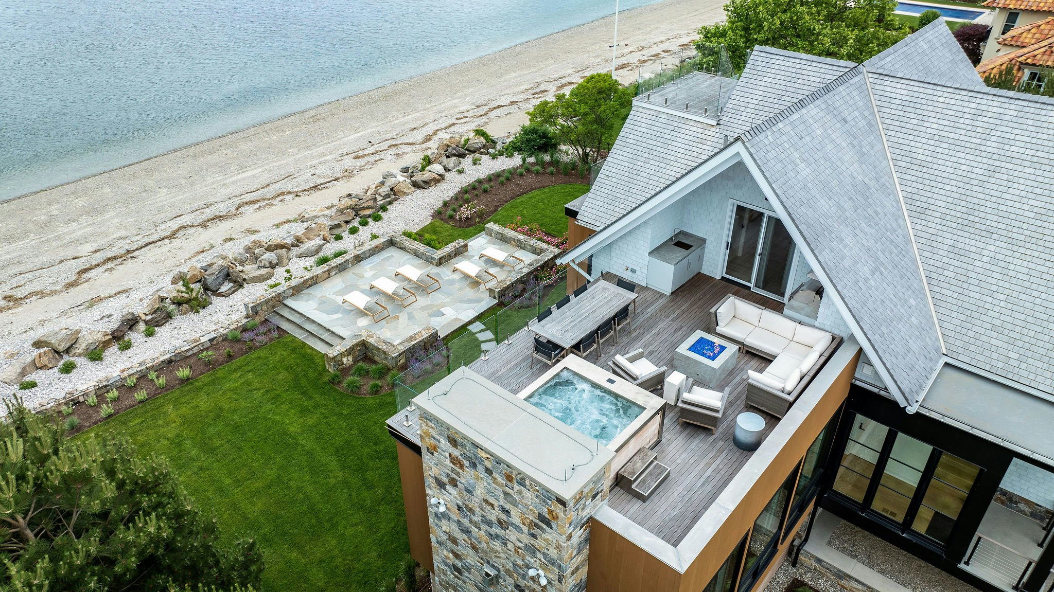 Durable, maintenance-free building materials are blended seamlessly to deliver long-lasting performance while enhancing its style. Set in a prime Saugatuck setting where location truly shines, the home extends its livability outdoors with inviting spaces designed for effortless entertaining and relaxation. The result is a modern coastal retreat that feels elevated, efficient, and beautifully connected to its environment.
