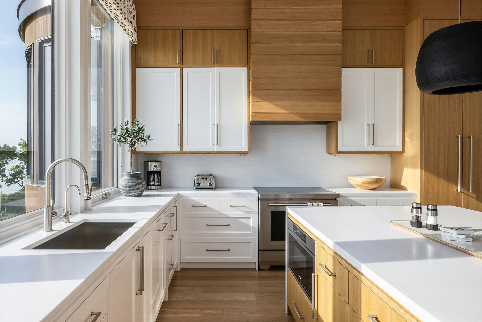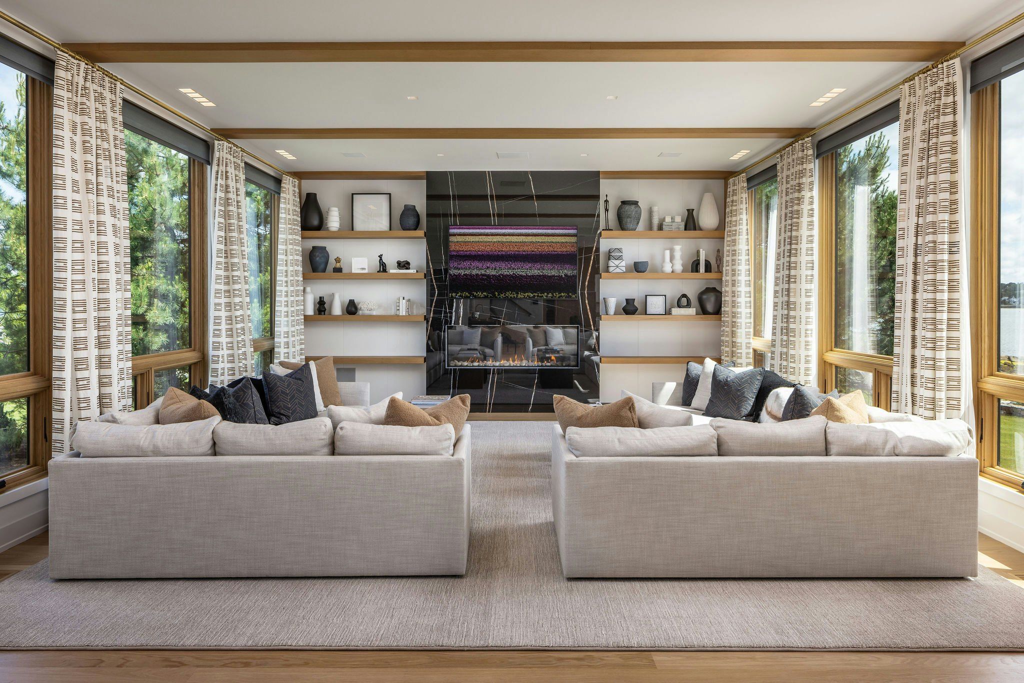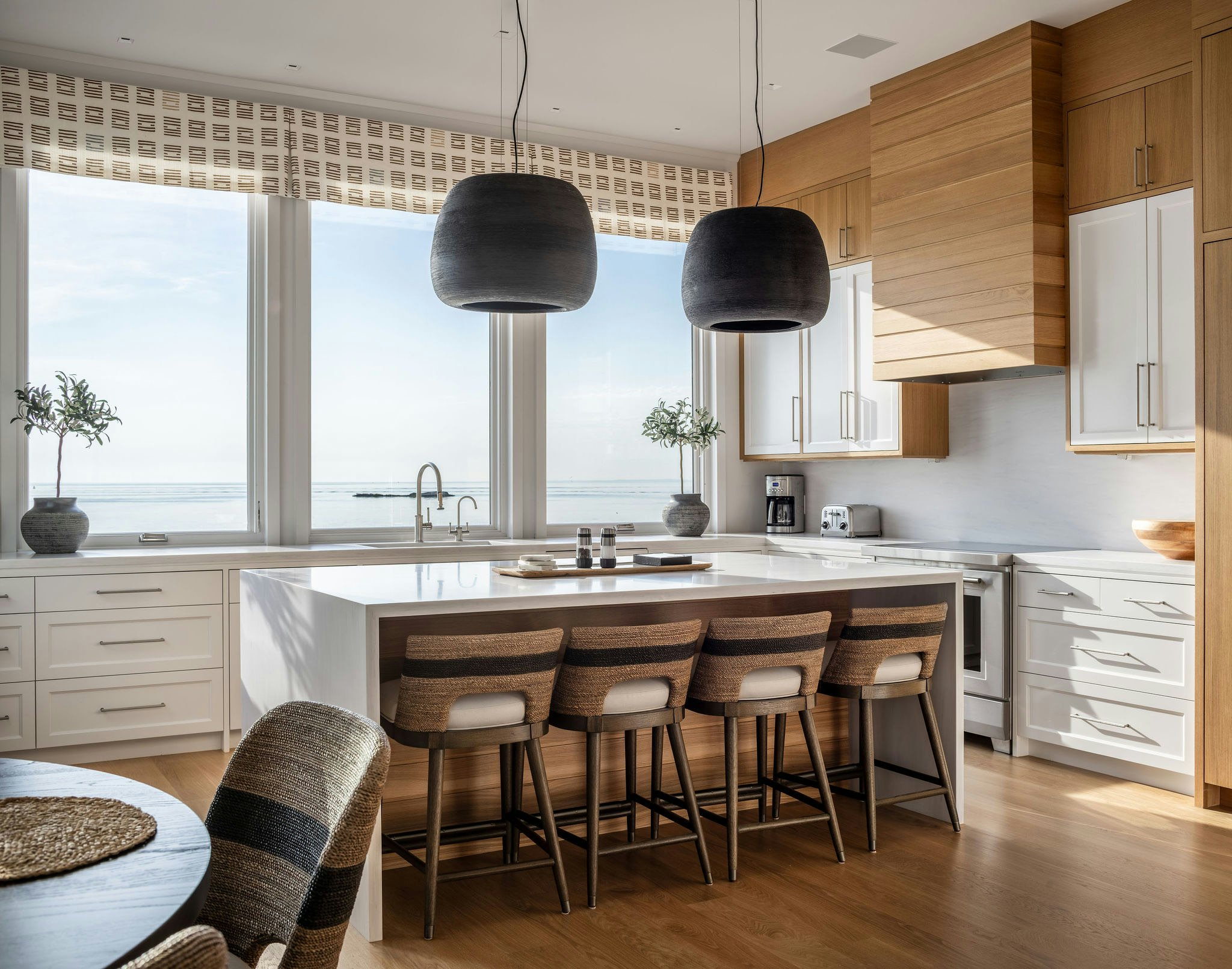 This custom home showcases a refined modern design, balancing clean contemporary lines with coastal-inspired elegance. Thoughtfully planned, it’s a small home that lives large, maximizing every square foot to create open, airy spaces that feel both practical and luxurious. Expansive windows and strategic sightlines take full advantage of the abundant views, bringing the surrounding landscape into daily living.